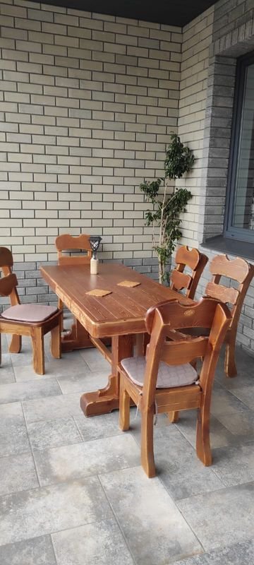 Стулья и скамья приходят в собранном виде, а стол отправляем в разобранном виде - отдельно столешница и отдельно ножки. Стол собирается за 5 минут, весь крепеж отправляется в комплекте. При этом вся мебель упаковывается в стрейч-пленку с применением вспененного прокладочного материала толщиной 4-6 мм. И если доставку осуществляет транспортная компания, то еще применяется жесткая упаковка.