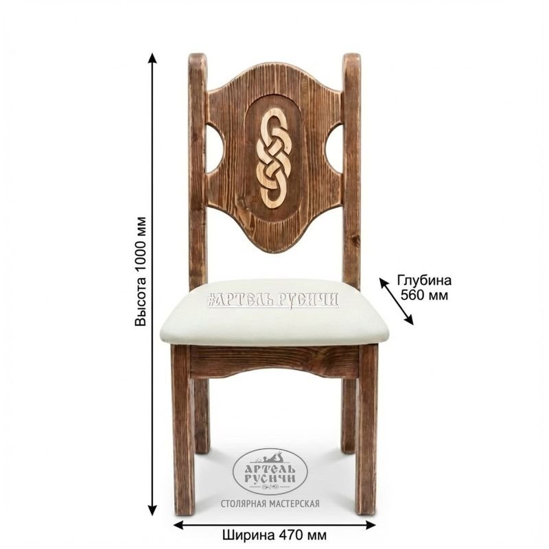 Деревянный стул под старину с мягкой обивкой и резьбой из «Смоленской» коллекции можно рассматривать как долгосрочную инвестицию. Такие изделия не упадут в цене и не утратят привлекательного вида даже спустя десятки лет эксплуатации. Ваши дети и внуки обязательно оценят стиль, основательность и статус состаренной мебели из массива дерева премиум-класса от «Артели «Русичи».