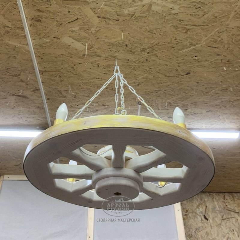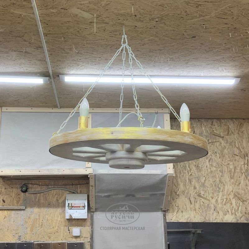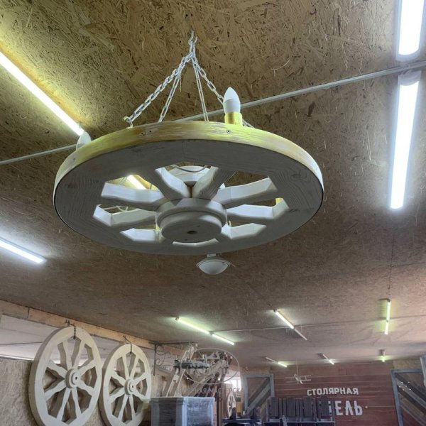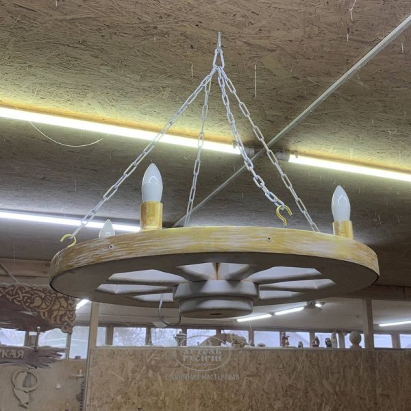 Создавая деревянную люстру из коллекции «Ямщик», мы взяли за основу элемент старинного быта, который сейчас остался, разве что, как колоритный элемент декора и музейных экспозиций - деревянное колесо от телеги. Наши дизайнеры дополнили этот образ современным функционалом осветительных приборов, так что сейчас очень удобно пользоваться этой люстрой в любых интерьерах, будь то загородный дом, дача или ресторан.