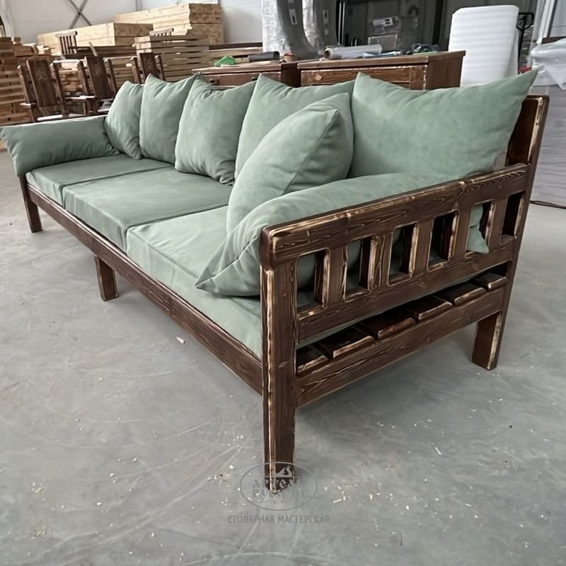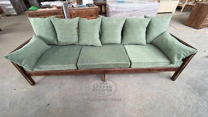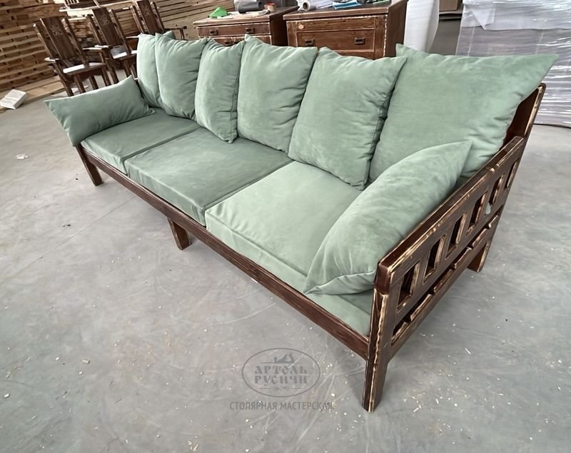 Вы всегда можете купить мебель под старину премиум-класса в нашем интернет-магазине «Артель Русичи» или сделать индивидуальный заказ. Выполним по вашим параметрам, с учетом всех пожеланий. Позвольте себе проводить время с комфортом на диване из массива северной сосны с близкими и родными!