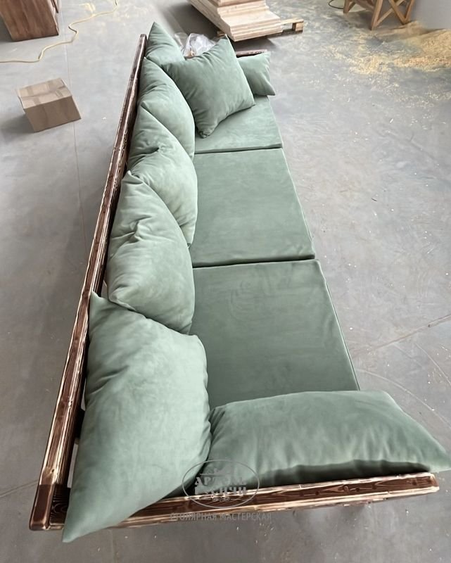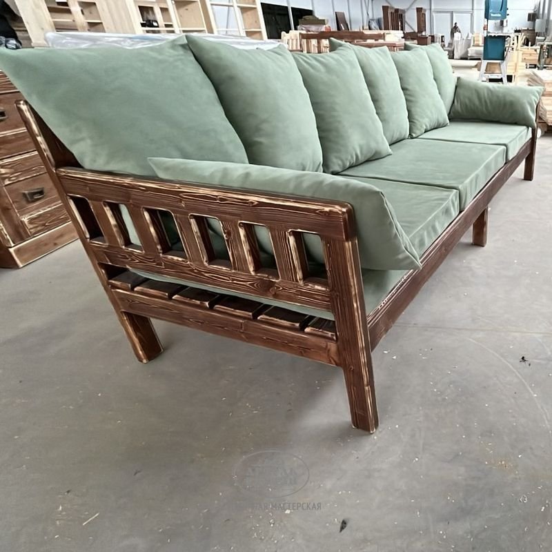 Конструкция дивана выдерживает регулярные нагрузки, не деформируется со временем и сохраняет стабильность даже при активной эксплуатации. Для защиты поверхности применяется профессиональные деревозащитные покрытия премиум-класса. Они надёжно оберегают древесину от внешних воздействий, придают ей благородный матовый блеск и подчёркивают природную текстуру массива.