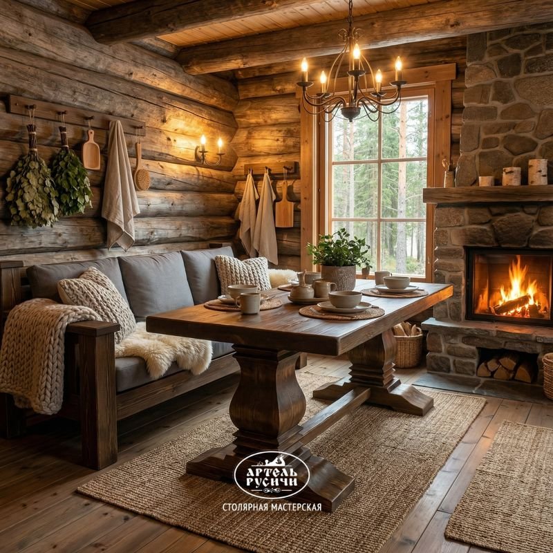 Мы создаём столы из массива северной сосны камерной сушки, которые наследуют дух богатырской Руси. Они созданы для мест силы: для шумной зоны барбекю на свежем воздухе, для тёплой комнаты отдыха в бане, где пар соседствует с душевной беседой, или для просторной кухни-столовой — настоящего родового гнезда. Вы можете выбрать точную длину, чтобы стол идеально вписался в ваше пространство.