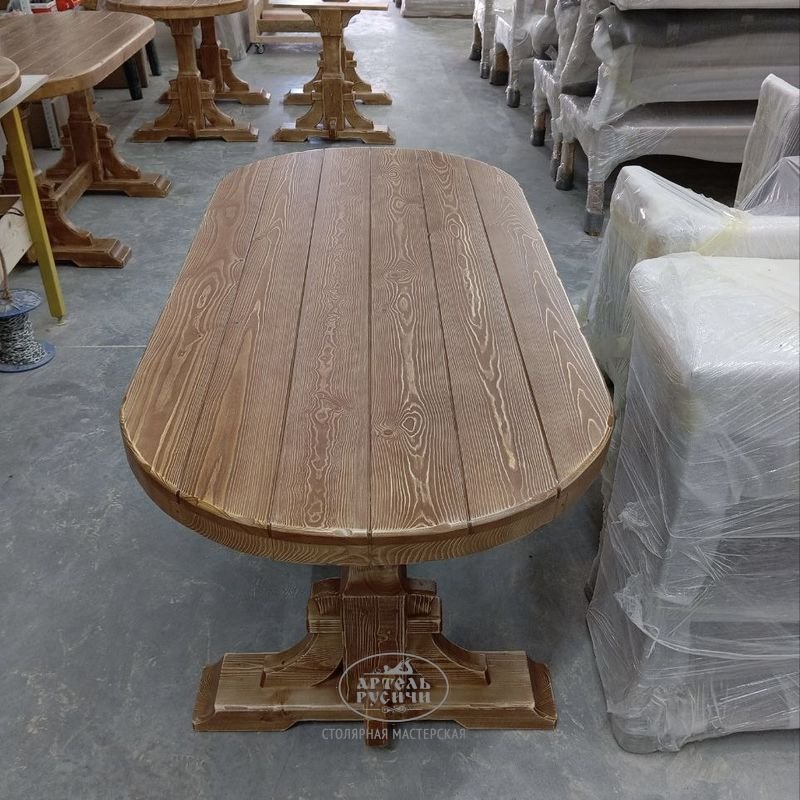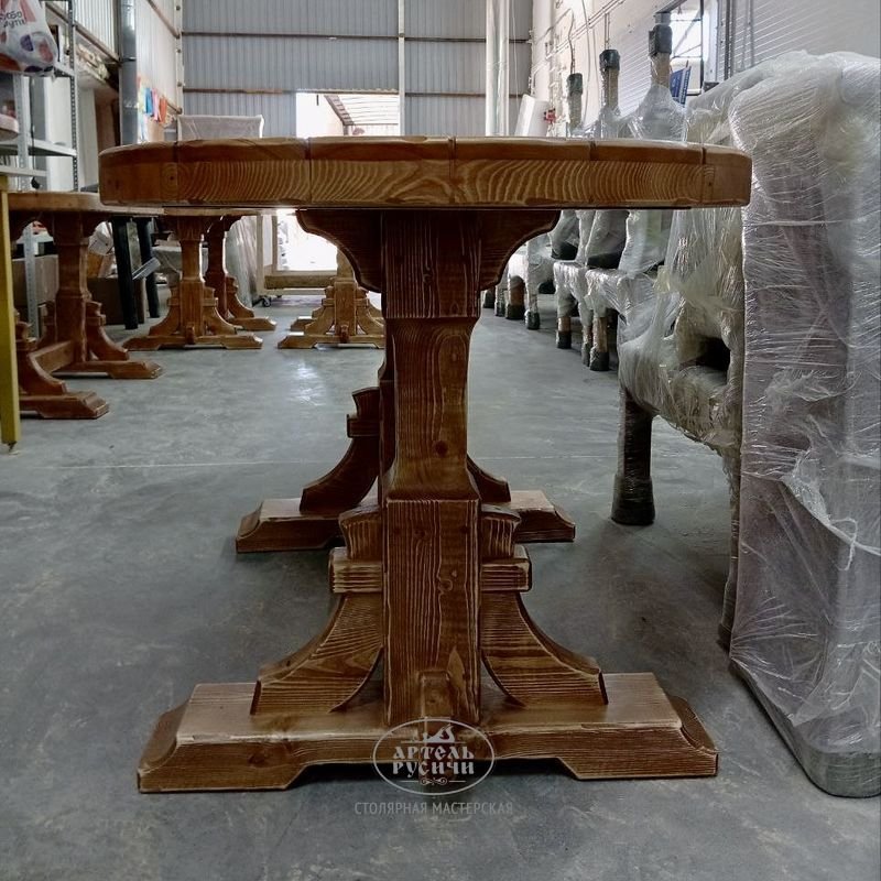 В плавных линиях и основательной столешнице угадывается наследие древнерусских мастеров. Этот стол словно хранит тепло рук ремесленников, создававших мебель для многолетних семейных посиделок. Широкие лавки, удобные скамейки и добротные стулья за таким столом сами приглашают к неторопливым беседам за чаем и душевным разговорам при свечах.
