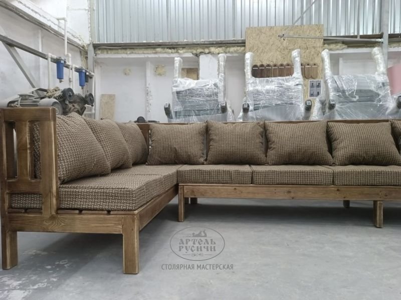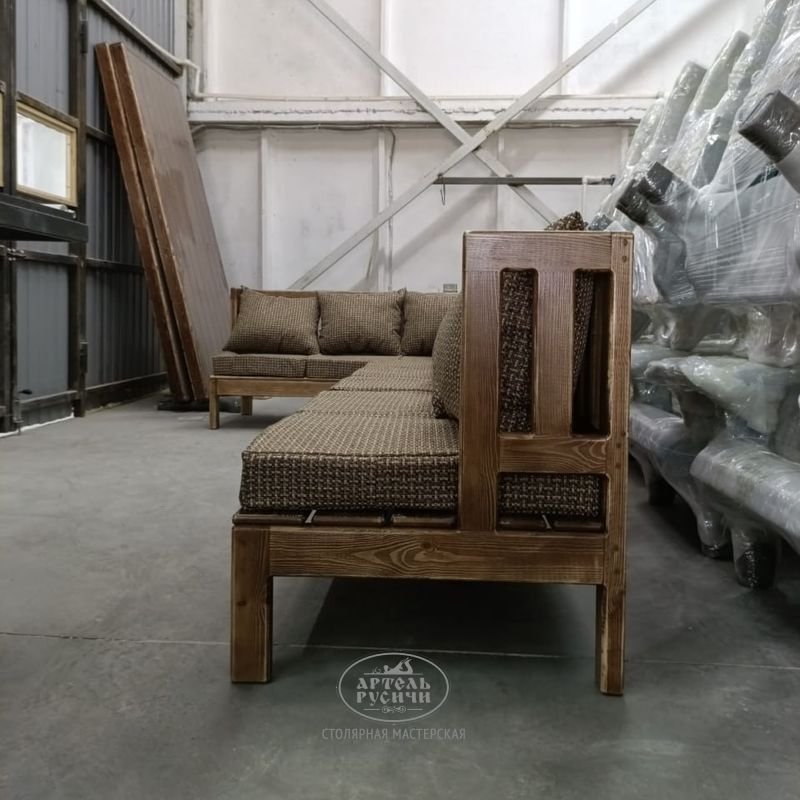 Деревянный диван из массива сосны с мягкими подушками отличный компаньон к журнальному столу, но может быть использован и сам по себе – как место для отдыха в саду, на террасе или в бане. Позвольте себе проводить время с комфортом на диване-скамье с подушками из коллекции «Русский лофт»! Дерево может быть удобным. Ваши близкие и родные по достоинству оценят комфорт мебели от Русичей.