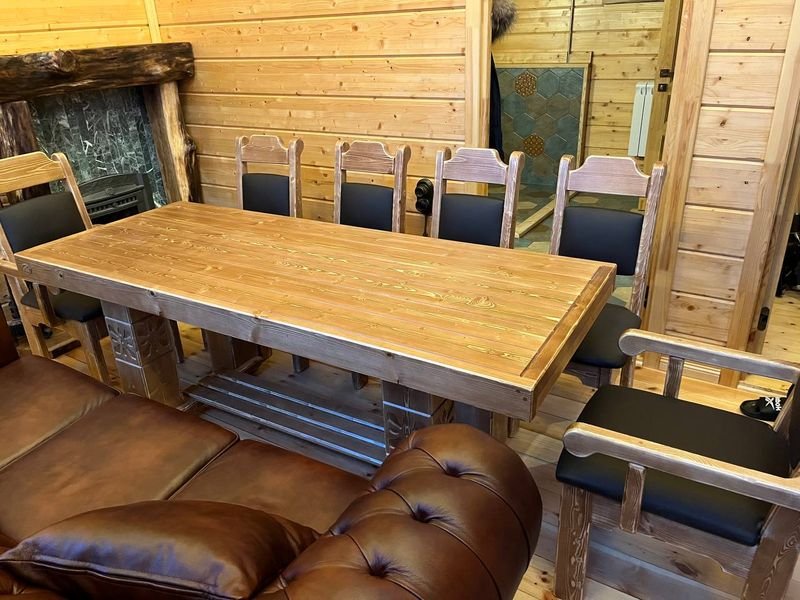 По вашему спецзаказу мы сделаем резную надпись на спинке стула или на столешнице стола, в которой отразим вашу индивидуальность. Например, мы можем написать: