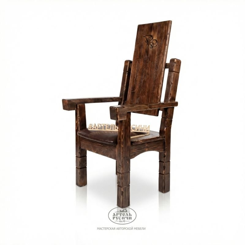Трон «Суздальский» — мебель, в которую вы влюбитесь с первого взгляда. Удобная спинка с наклоном, подлокотники лаконичной, но изящной формы, мягкое сидение – все это делает стул комфортным и удобным предметом мебели. Отдохнуть, почитать книгу, просто посидеть на таком троне перед камином или с видом на закат – одно удовольствие. Прибавьте сюда приятную на ощупь текстуру натурального дерева, подчеркнутую профессиональным итальянским лаком, и вы получите идеальную мебель для дома, открытой террасы, сада или шале.