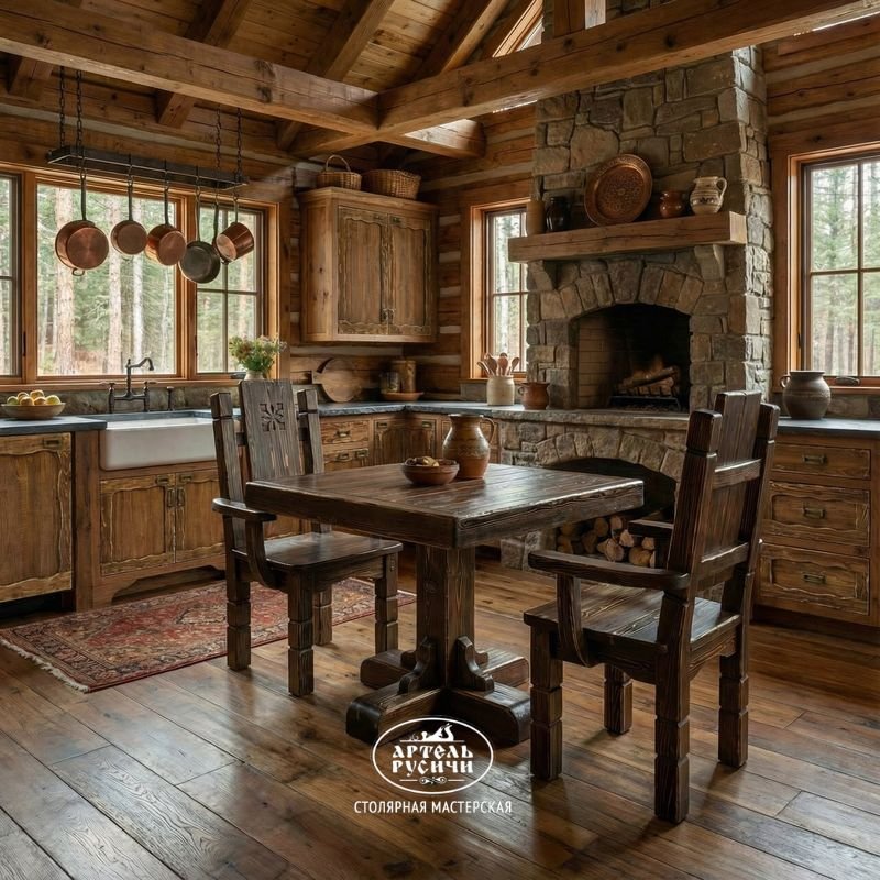 Мы работаем с массивом северной сосны, которую заказываем в Карелии. Северная сосна — более плотная, чем южная, она растет в суровых климатических условиях, и мебель из нее служит долго. А еще именно из этой древесины делали мебель во времена зарождения русского стиля. Мы обрабатываем сосну премиальными лакокрасочными материалами, подчеркиваем структуру дерева, создаем элементы старины — так и рождаются коллекции «Русичей».