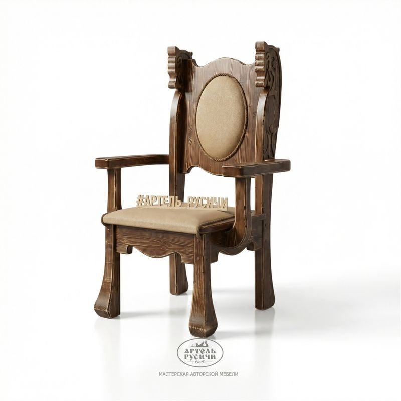 Позвольте себе проводить время с комфортом в резном кресле ручной работы из коллекции «Драккар»! Дерево может быть удобным. Ваши близкие и родные по достоинству оценят комфорт мебели от Русичей.