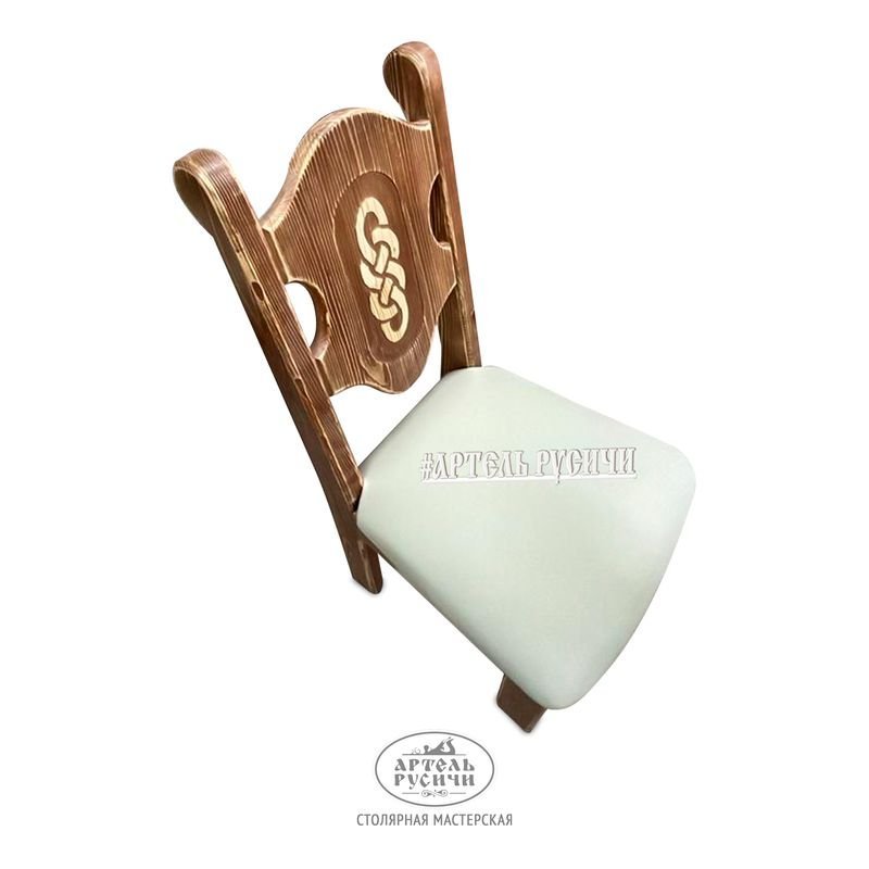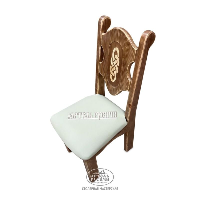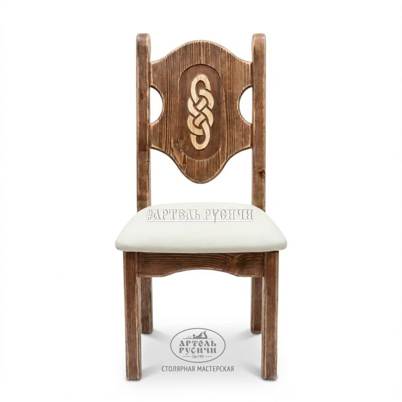 Стул с мягкой обивкой и резьбой из коллекции «Смоленская» изготовлен из цельного массива северной сосны и представляет собой прочное и экологичное изделие, выполненное в древнерусской стилистике. Такой предмет мебели будет служить вам верой и правдой десятки лет, при этом с годами его привлекательность будет только усиливаться.