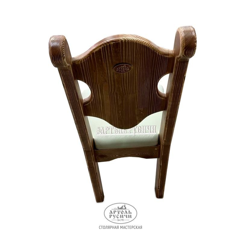 Деревянный стул под старину с мягкой обивкой и резьбой из «Смоленской» коллекции можно рассматривать как долгосрочную инвестицию. Такие изделия не упадут в цене и не утратят привлекательного вида даже спустя десятки лет эксплуатации. Ваши дети и внуки обязательно оценят стиль, основательность и статус состаренной мебели из массива дерева премиум-класса от «Артели «Русичи».