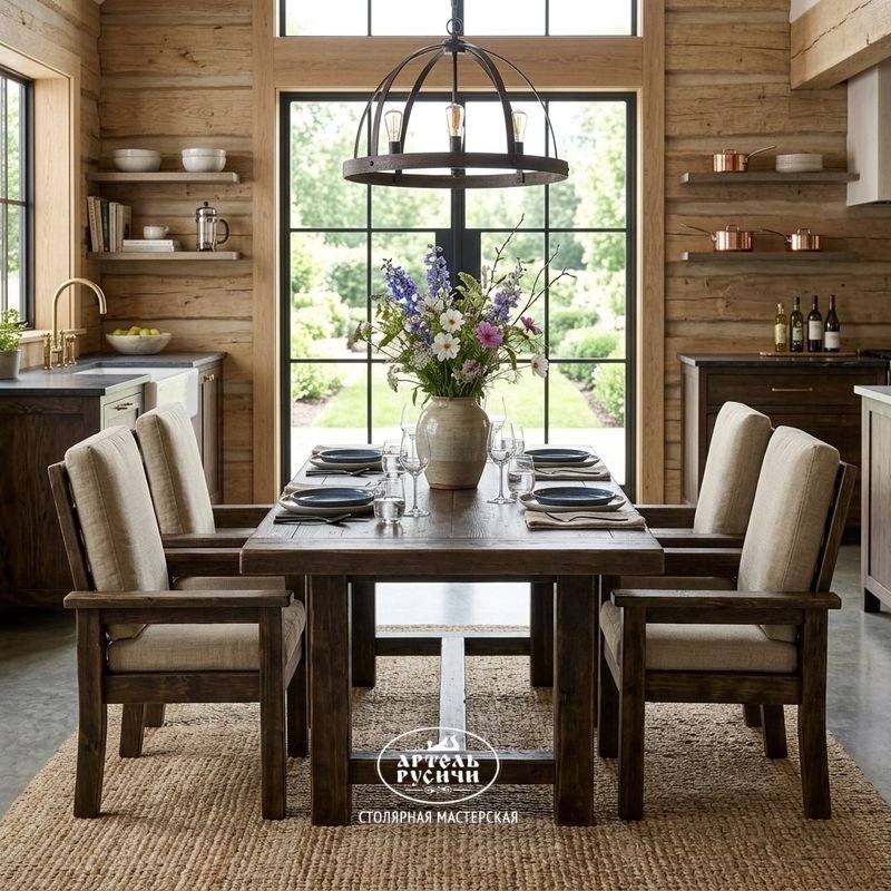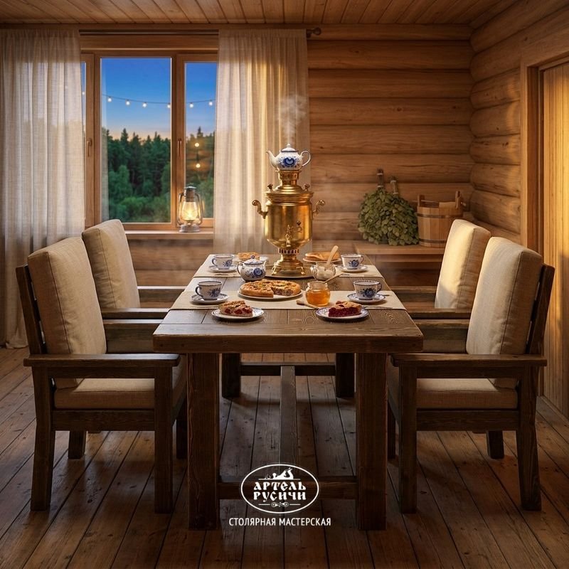 Стул сделан из массива северной сосны — плотной, смолистой древесины, которая веками росла в суровом климате. Благодаря камерной сушке материал остаётся стабильным: не коробится, не трескается и не боится перепадов температур. Дерево сохраняет тепло, приятно на ощупь и с годами становится только красивее.