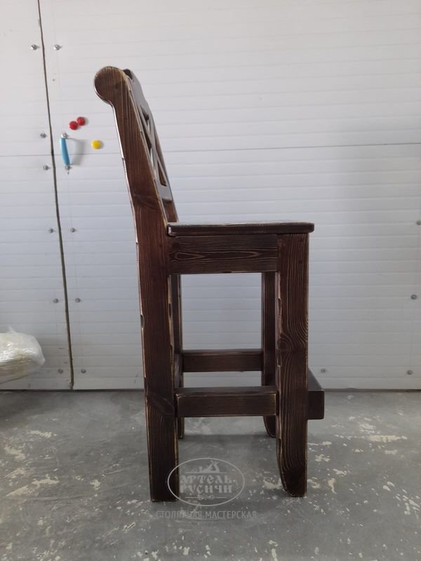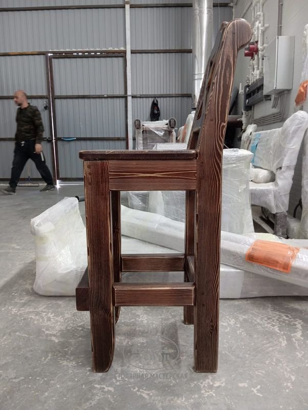 Высокий стул «Прованс» изготовлен полностью вручную из массива северной сосны и призван служить вам верой и правдой десятки лет. Для усиления конструкции мы применяем крепеж из нержавеющей стали и профессиональный клей. Все металлические детали искусно задекорированы элементами из древесины. Стул не деформируется под давлением, выдерживает регулярные нагрузки, не рассыхается и не расшатывается.