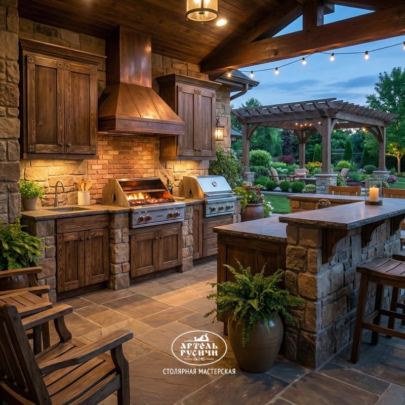 Для зоны барбекю, летней кухни или мангальной площадки эти фасады — идеальный, технически обоснованный выбор. Массив северной сосны, правильно обработанный, обладает высокой стойкостью к переменчивым уличным условиям. Специальные защитные покрытия с УФ-фильтрами оберегают дерево от выцветания на солнце и от влаги.