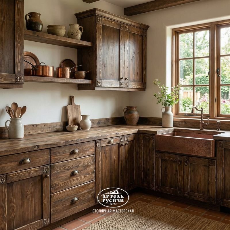 Прочность и стабильность — основа этой коллекции. Каждый фасад изготовлен из массива архангельской сосны, прошедшей камерную сушку. Это гарантирует, что дверцы не поведут и не перекосит от перепадов температуры и влажности, будь то жар у плиты или прохлада открытой веранды.