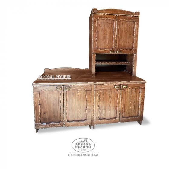 Кухонный комплект из коллекции «Псковский» - это не только удобное место для хранения вещей и утвари, но и изысканный предмет интерьера. Изделие идеально впишется в ретро-стиль, в атмосферу загородного дома или дачи, создаст нужный антураж и национальный колорит в любом помещении, оформленном под старину.