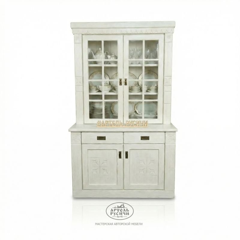 Главный секрет нашего буфета — в гармоничном сочетании массивности и изящества. Основа — цельный массив северной (архангельской) сосны камерной сушки, несущий в себе прочность и тепло. Элементы классического профиля и филёнчатые фасады выполнены вручную, что придаёт изделию аутентичность и шарм старинной мебели.