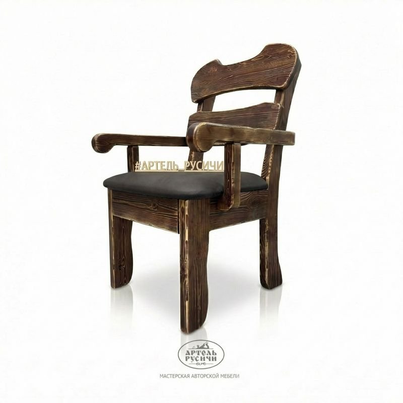 Мебель имеет уникальный дизайн и выполнена в стилистике русского декоративно-прикладного искусства – строгие линии сочетаются с изящными изгибами. Нарочитая брутальность и грубость добавляет этому комплекту особую харизму. Комплект будет отлично смотреться в помещениях в стиле этно, рустик, классик, кантри, лофт, а благодаря укрепленной конструкции - стол и кресла справятся с любыми нагрузками.