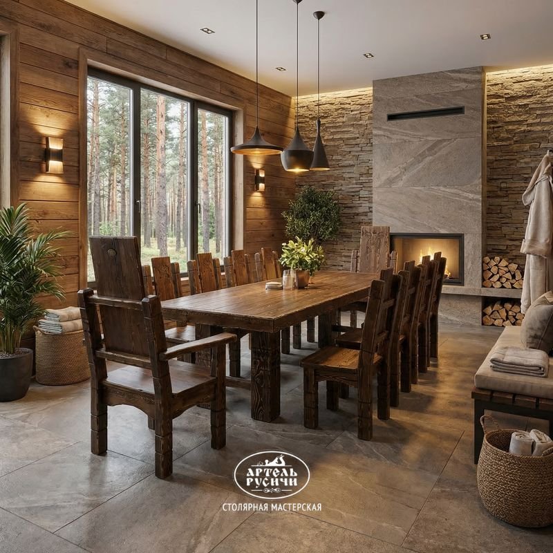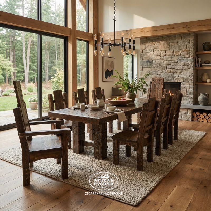 Обеденная группа будет особенно уместно смотреться в просторном доме, коттедже или квартире, оформленной в соответствующей стилистике – кантри, этно, рустика, лофт. Кроме того, такая мебель станет идеальным решением для оформления ресторана или кафе в национальных мотивах.