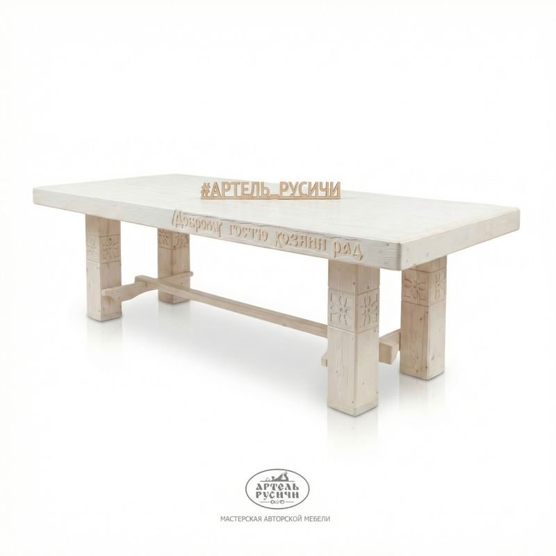 По вашему спецзаказу мы сделаем резную надпись на торце стола, на самой столешнице или на спинке стула, в которой отразим вашу индивидуальность.