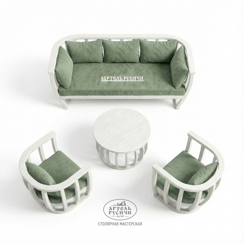 Главный секрет этого комплекта — в гармонии. Каждый предмет — диван, кресла, столик — выполнен из одного материала: массива северной (архангельской) сосны камерной сушки по ГОСТ. Это гарантирует не только визуальное единство, но и одинаковую реакцию всех элементов на окружающую среду: они будут стабильны, не поведёт и не рассохнется ни один компонент вашей зоны отдыха.