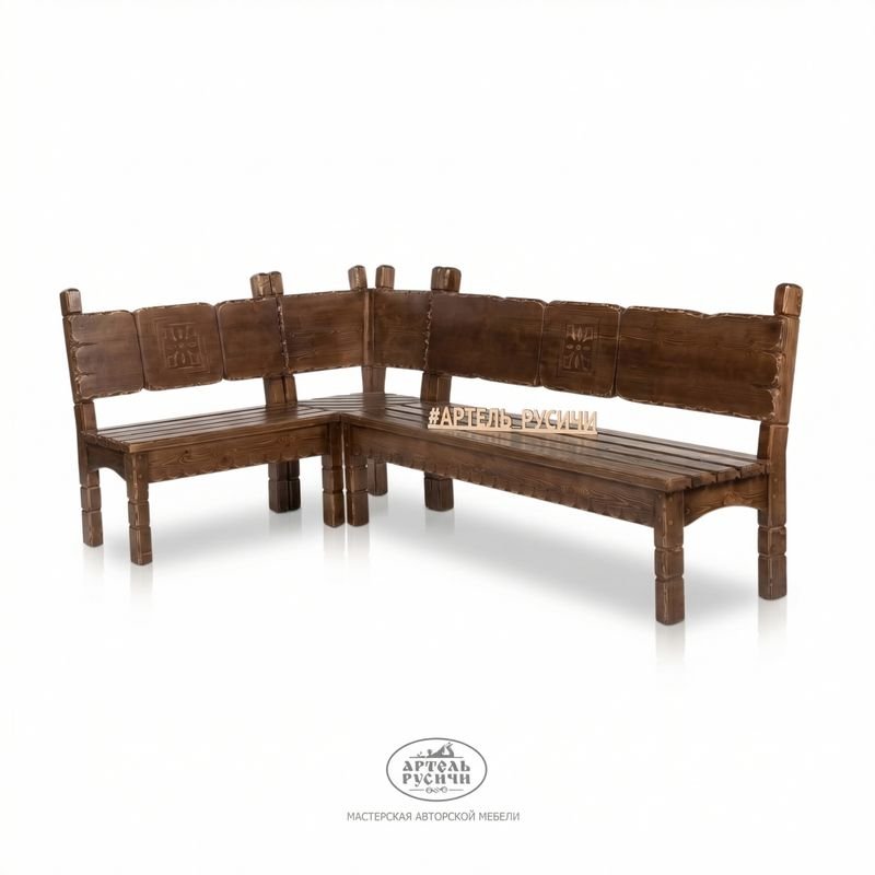 Позвольте себе проводить время с комфортом на угловой скамье из коллекции «Суздальская»! Дерево может быть удобным. Ваши близкие и родные по достоинству оценят комфорт мебели от Русичей.