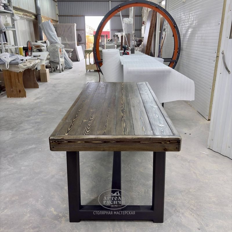 Этот стол в стиле русский лофт создан вручную нашими мастерами и создает идеальный баланс между промышленной эстетикой и природной теплотой дерева. Он призван дарить эстетическое удовольствие, верно служить и передаваться по наследству как пример безупречного вкуса и качества.