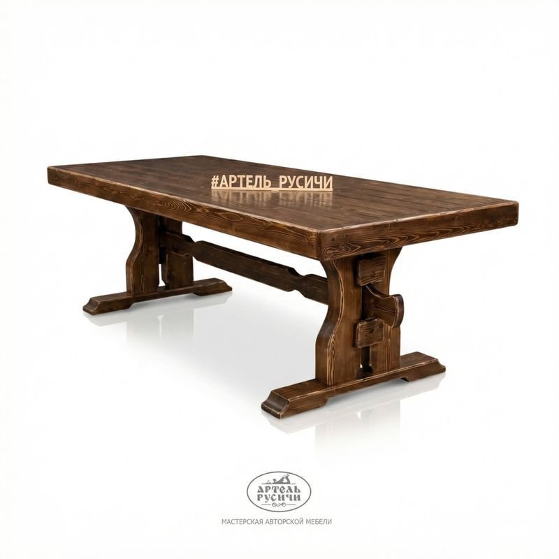 Дизайнеры «Артели «Русичи» создавали стол «Псковский - богатырский» на основе исконно русских традиций, но с использованием современных технологий. Искусная отделка ручной работы под старину позволяет обладателям стола с полной достоверностью ощутить атмосферу древней Руси и перенестись в русское средневековье. Именно за такими столами русские богатыри и устраивали пиры в честь своих побед.