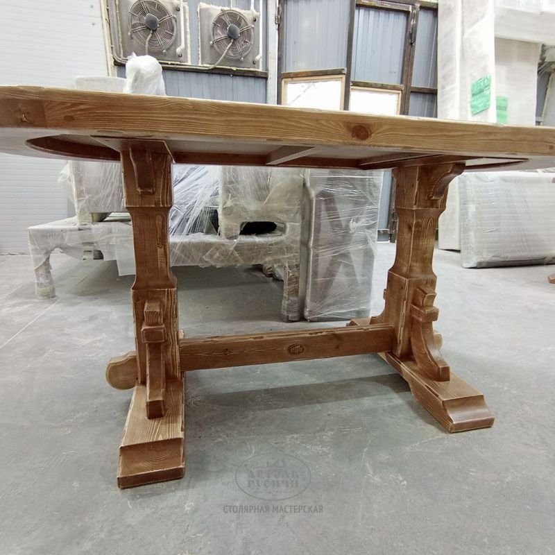 В плавных линиях и основательной столешнице угадывается наследие древнерусских мастеров. Этот стол словно хранит тепло рук ремесленников, создававших мебель для многолетних семейных посиделок. Широкие лавки, удобные скамейки и добротные стулья за таким столом сами приглашают к неторопливым беседам за чаем и душевным разговорам при свечах.