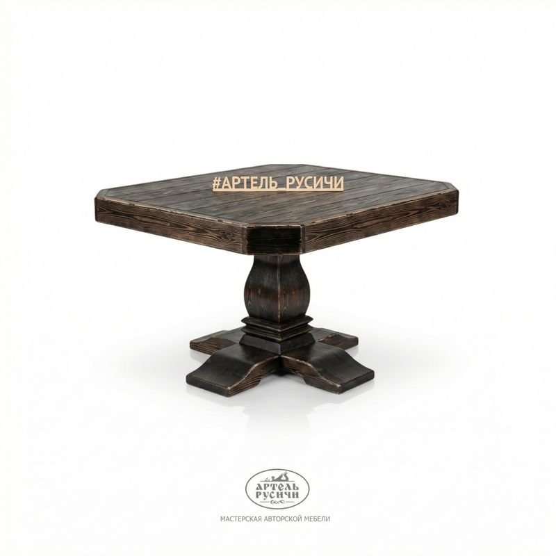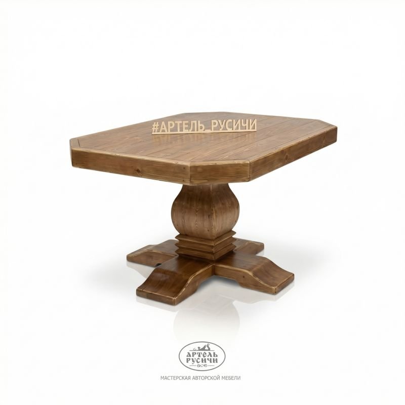 Особое внимание уделено эффекту искусственного состаривания – процедура выполнена по оригинальной авторской технологии, разработанной мастерами Артели «Русичи». Этот прием позволяет выделить уникальный природный узор древесины, подчеркнуть ее теплоту и текстуру, создать потертости на гранях мебели, искусно имитирующие длительное использование стола.