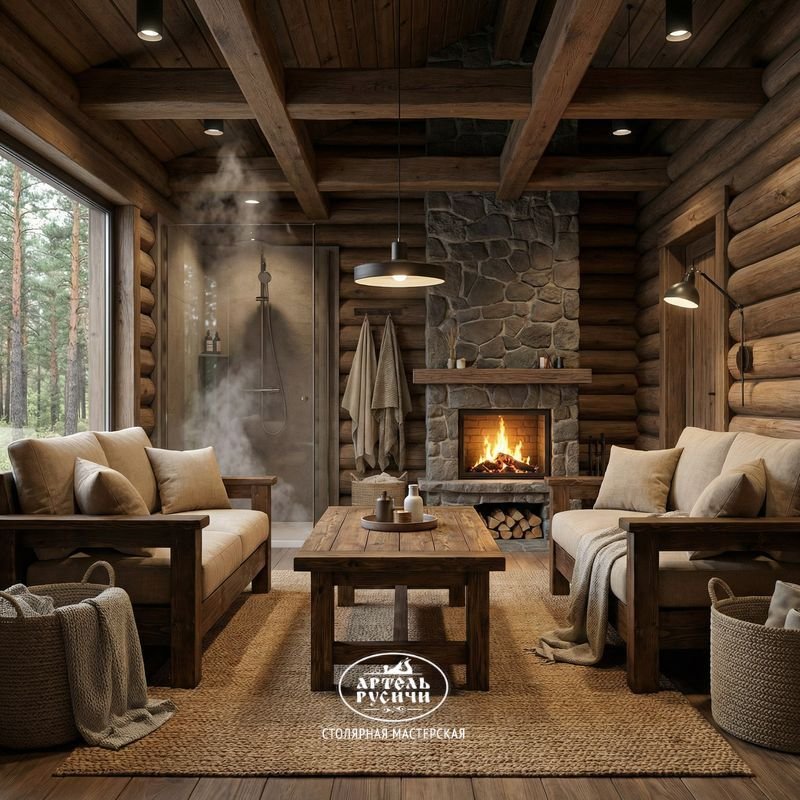 В комнате отдыха бани его натуральность и устойчивость к повышенной влажности делают «Кантри» идеальным выбором. На массивной столешнице удобно расположить самовар, травяной чай или банные принадлежности, завершая аутентичную атмосферу релакса.