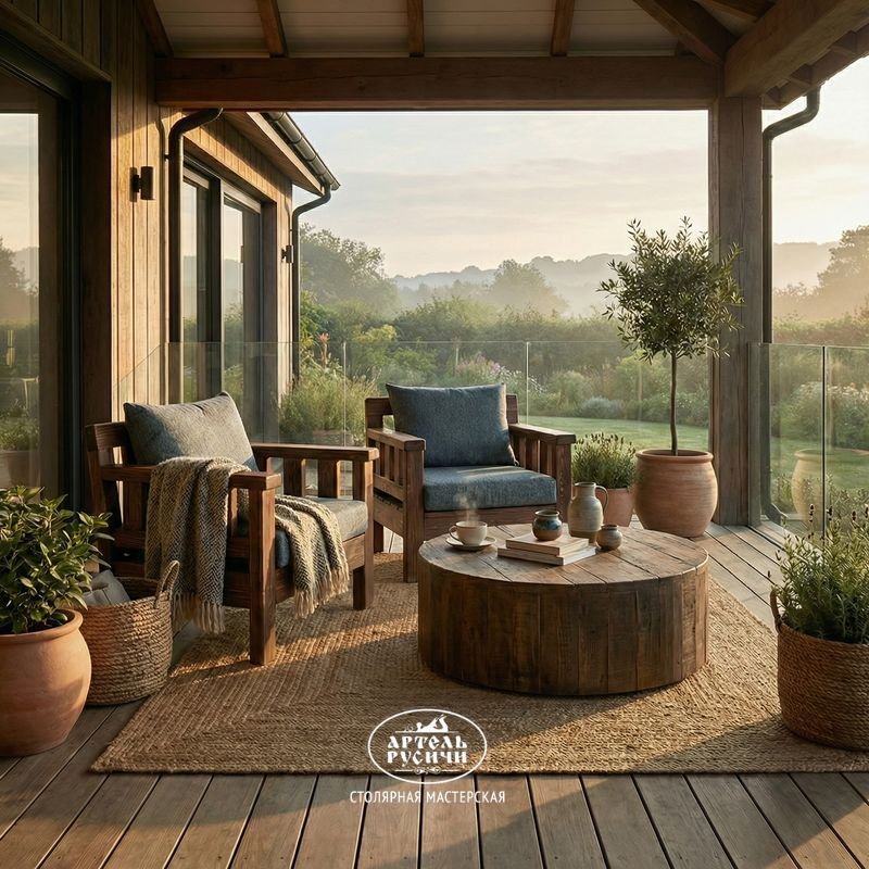 Кресло «Ладожское» создано для условий, в которых обычная мебель не выживает. Его уличная стойкость — результат правильного материала, сушки и профессиональной защиты. Для круглогодичного использования на открытом воздухе рекомендуем использовать тент или заносить подушки в помещение на зиму, хотя само дерево спокойно переносит морозы.