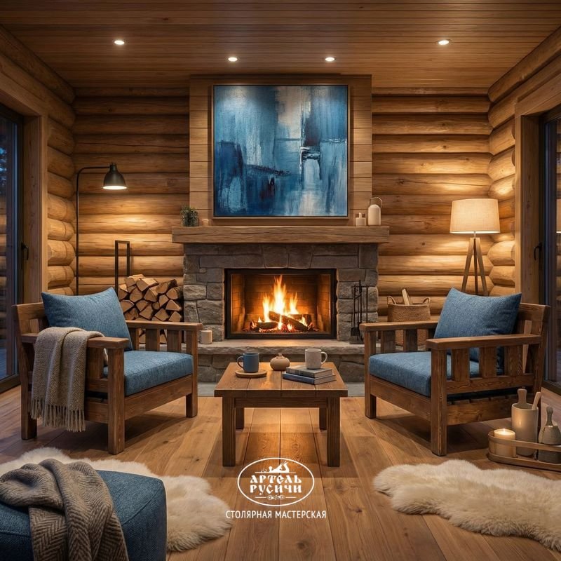 В гостиной загородного дома кресло «Ладожское» становится мощным акцентом, задающим тон всему интерьеру. Оно создаёт уютный уголок для чтения или размышлений, внося дух северной сказки и подлинной старины. Его присутствие делает пространство более тёплым, живым и наполненным историей.