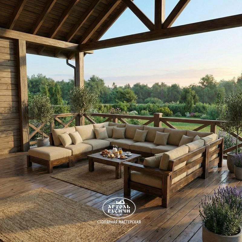 П-образный диван из массива архангельской сосны создан для тех, кто ценит широкое гостеприимство и комфорт для каждого. Его размах и открытые объятия угловых секций моментально превращают любое пространство в место для сборов, праздников и неторопливого отдыха в кругу семьи и друзей. Он формирует собственный уютный мир внутри вашей гостиной, террасы или комнаты отдыха в бане.