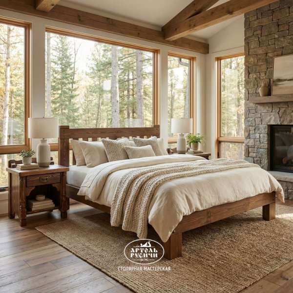 Мебель из массива натурального дерева для спальни загородного дома или дачи